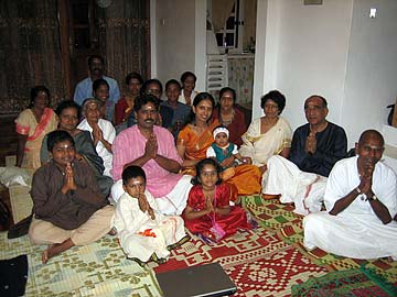 I am very very very happy to inform YOU that we had a wonderful satsang at my home yesterday 13th Nov 2008. We started with a Pada Puja followed by singing of Natchintanai songs;Homam;Talk on "cleanliness" by Kulapathi Manon;viewing of newsletter DVD and finally had a nice meals cooked especially for our Kuthumba by Anjeeni Devi.