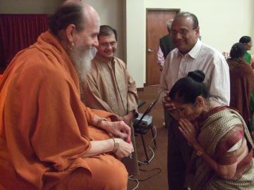 The Doctors Tolia, who hosted Bodhinatha for satsang in their home one evening later in the week, came forward for vibhuti prasadam.