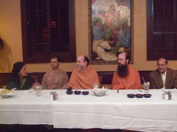 No visit to West Texas is complete without a traditional Mexican dinner. Cuando estás tan cerca de México...! (Left to right: Dr. Padmaja Patel, Dr. Mrunal Patel, Satguru Bodhinatha Veylanswami, Sannyasin Senthilnathaswami, Dr. Khandelwal)