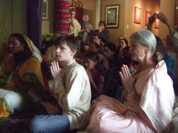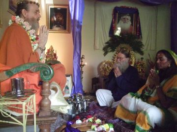 November 18, 2008On November 16, Satguru Bodhinatha Veylanswami presided at satsang at the home of Easvan and Devi Param, one of our Church families in Walnut Creek, Northern California. The traditional pada puja was performed, this time by Easvan and Devi's son, Chandran, and his sons, Bhajana and Jeyendra.