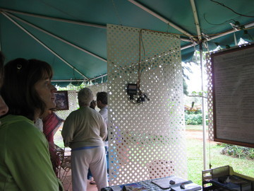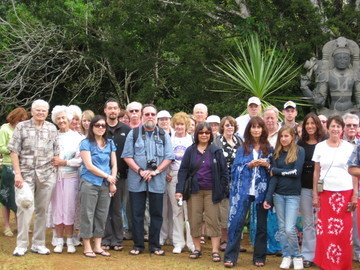 March 28, 2009Guests gather in the Banyan Mandapam for the weekly tour presentation. A visitor takes a few moments to read the 20 basic beliefs of Hinduism, the Yamas and Niyamas , Yoga's Forgotten Foundation.
