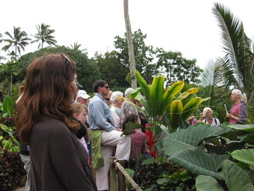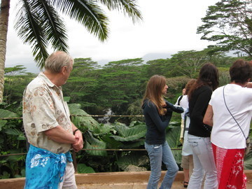 Stopping at the Nani Kaua Waterfall and Pond visitors learn about the extinct valcano, Mt Waialeale, and the land known as Pihana Kalani, "Where heaven touches earth."