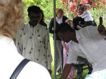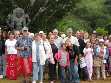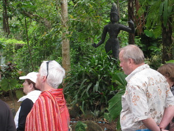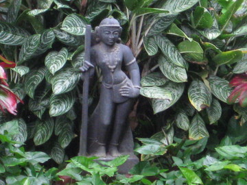 In the tropical gardens wonderful statues of the Gods peer out seemingly enjoying the beautiful souls strolling by. This is the renunciate, Lord Palani.