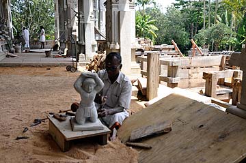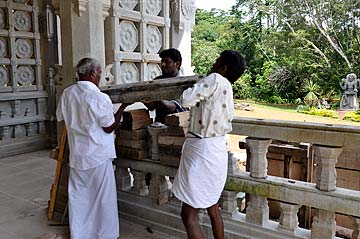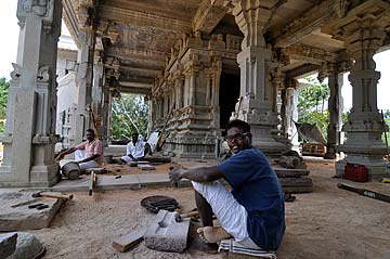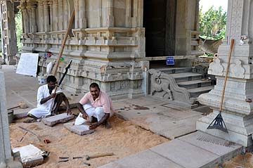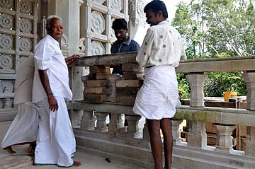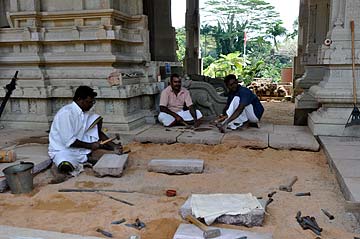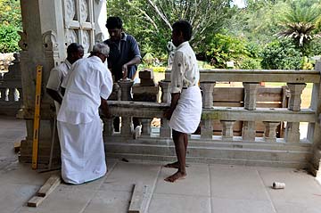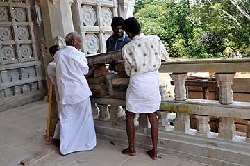Go out to Iraivan to take a look a the railing being assembled along one of the edges of the temple.