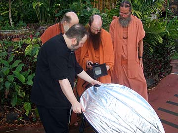 Our monks take turns acting as the subject. Paramacharya Palaniswami sits where Bodhinatha usually sits on Sun One.