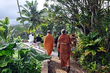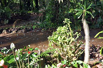 Next we go to the Orchid Mandapam to see if this might serve as a good place to shoot video of pilgrims giving testimony. The challenge will be the loud sound of the river behind us. It could overpower the voice of the interviewees, unless they happen to have booming voices.