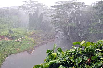 A sudden downpour gives a mystical look at the Wailua River. It is the blessing of water flowing down all around us.