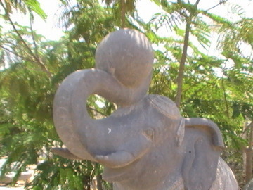 He holds a globe in his trunk, as described by Gurudeva. It represents Hinduism's love of the Earth and its the all-encompassing spirit.