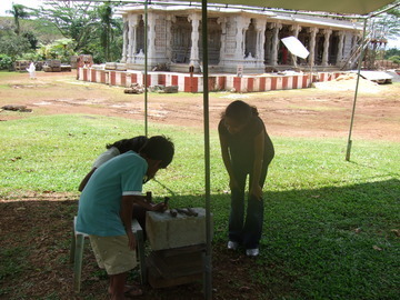 April 13, 2009Srikanth and Haritha Deme, with their three young children, visited Kauai from Texas for the first time while on vacation, stopping over for a day after being on Maui. They are friends of the Master Course student family of Mrunal, Padmaja and Pooja Patel. Padmaja teaches the children in the local temple's Bal Vikas religion classes.
