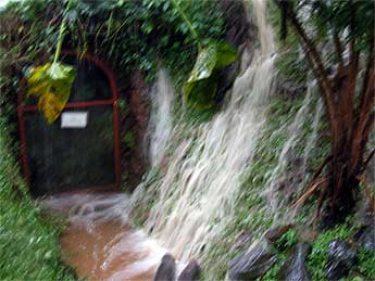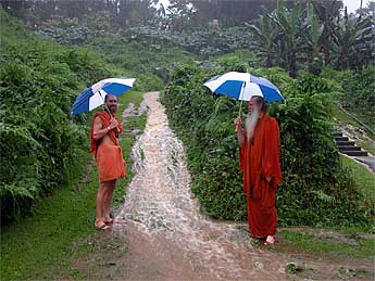 At home, we don't know, perhaps it was our focus on water... but nature brought one of those mini-tsunamis to the Aadheenam, drop by drop. It began early yesterday afternoon, the rain started.. again, but now... it didn't stop. We went to bed as usual at nine PM... walking in the dark, in the rain to our guhas. The gentle showers continued... getting louder and louder and louder. It didn't stop... all night long...