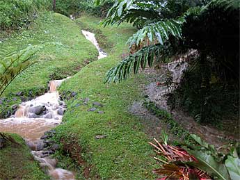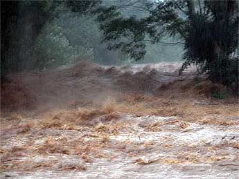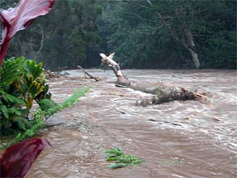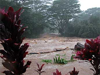 When the northeast sectors reach saturation, there is nowhere else for the water to go, all the land of our neighborhood, streets, home back yards: has become a giant lake... and there is one place to go: straight down to the Wailue River... and guess where it has to go to get there?