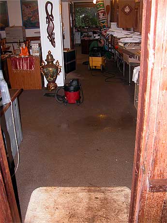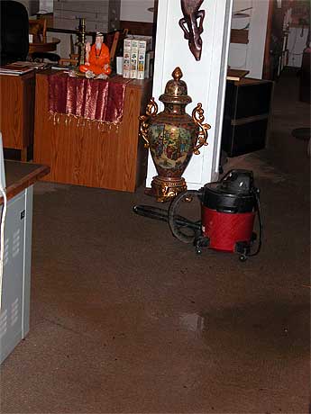 Sivakatirswami mans the wet vac... we painstakingly vacuum up every square inch of the carpet and turn on the fans...