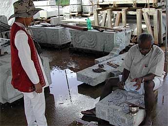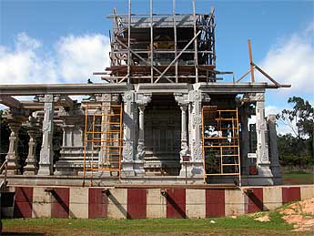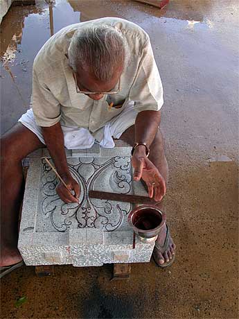At the temple site we find Shanmugam Sthapathi working on a stone that needs a complete facelift. We don't usually get to see his skills in action like this.