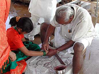 Shanmugam Sthapati even had Prashanthi help him draw a floral design on an official temple stone!