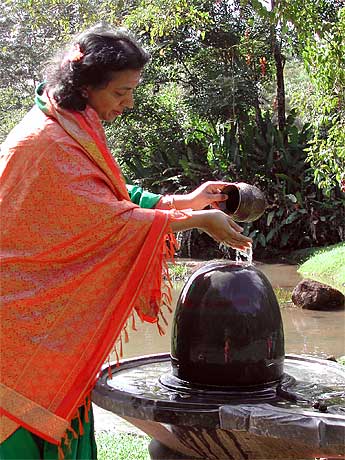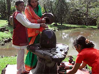 After that the family enjoyed performing personal abhishekam to our Narmada Lingam.