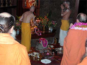 After the pada puja, Bodhinatha gave the annual State of the Church address, which Gurudeva traditionally gave at this time at the beginning of each new year.