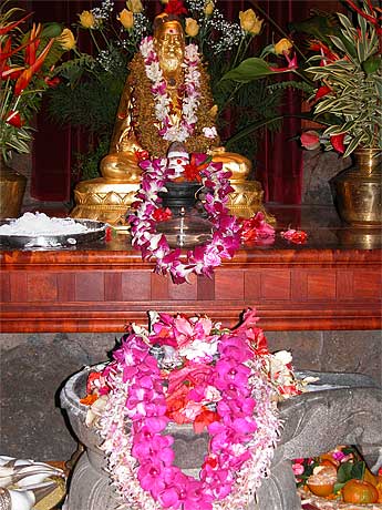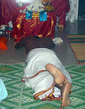 The puja is concluded and each devotee takes turns to prostrate on Satguru's Tiruvadi....Natchinthai also is sung during the prostration session..