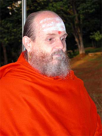Bodhinatha's eyes light up as he surveys the gold leaf work of the Chinna Gopuram at Iraivan: