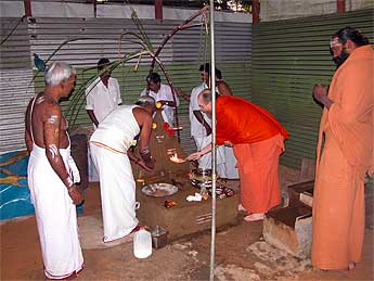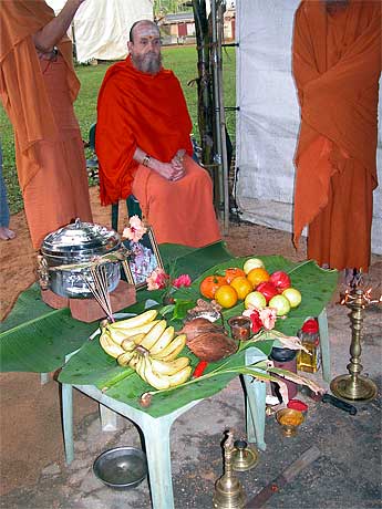 Bodhinatha is asked to start the ceremony by lighting the forge.