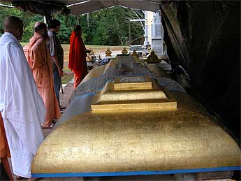 While waiting for the pot to boil, Bodhinatha goes over to Iraivan to survey the progress of the gold-leaf work.