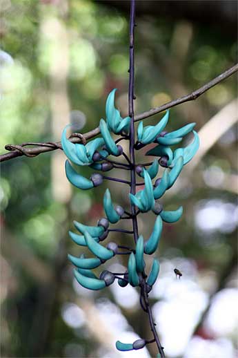 Back at the Aadheenam... a replacement for one of our digital cameras (which had died) arrived a few days ago. It has a much better lens and is much faster. We captured this bee coming for nectar of the magnificent blue jade vine flowers.