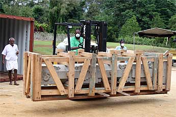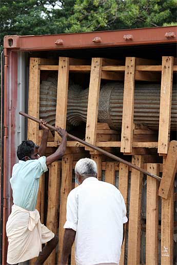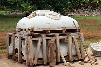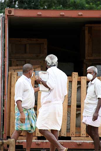 Unloading the containers is the news at Iraivan ... another huge pillar...