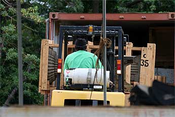 Yoginathaswami on the fork lift..
