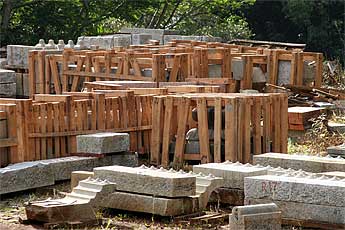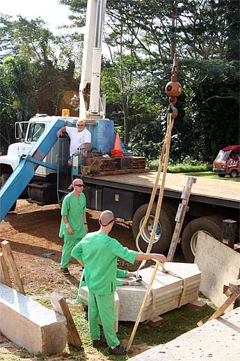 Because the foundation is getting tight, stones are being off loaded now outside on the ground.