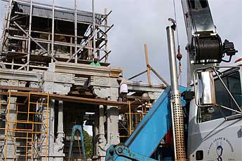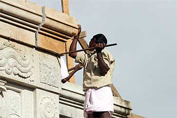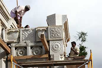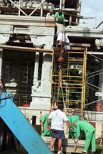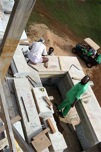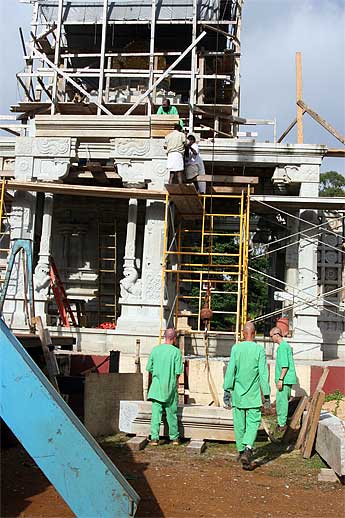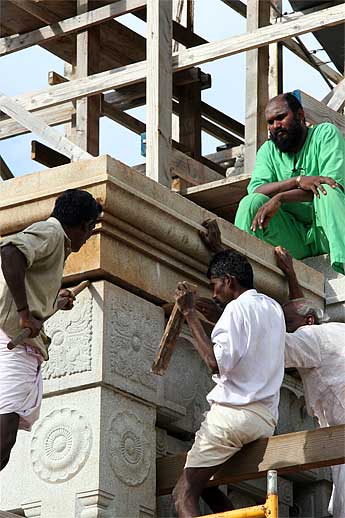 Inevitably adjustments must be made after the stones are put in place. Which involves a massive scaffolding effort on the part of the Siddhidata Kulam