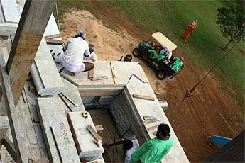 The big news today: stone lift by crane, 4 and 1/2 hours of painstaking careful, aerial placement.