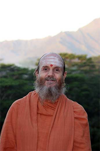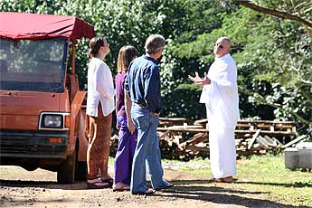 Sadhaka Haranandi hosts a group of local island folk, friends of our crane operator, Larry Conklin who recommended they go see the temple.