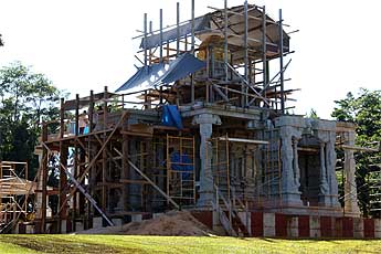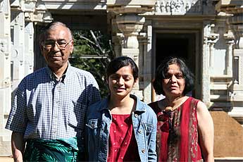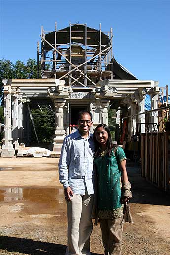 Karthik and Archana Sundaram from California attended this morning's 9am Siva puja then enjoyed a tour of the temple grounds and Iraivan. It is Archana's birthday today. Happy birthday to you Archana from Bodhinatha and all the monks here.
