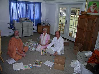 Today Deva and Amala Seyon came to the Pillaiyar Kulam office to learn how to do bulk mailings with Sannyasin Shanmuganathaswami. This mailing of Island Temple magazines is going to 620 people interested in Iraivan Temple. By sending the magazines bulk vs. first class mail, we saved the temple $527 in postage. Deva and Amala also prepare the Hinduism Today renewal mailings with the help of Deva's mother.