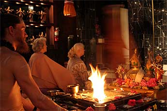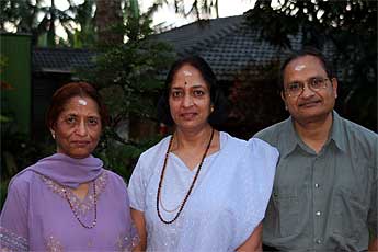 A visiting family... Praful Patel and wife who have visited here a couple of times before attended this morning's homa with a friend. They are visiting from Canada and enjoy coming to Kauai to visit the aadheenam. They are also subscribers to Hinduism Today.