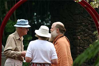 Here he is stopped by an interesting guest. This elderly gentleman is a top consultant for the Massachusetts Institute of Technology (MIT). His wife was proud to inform us of what she considered one of his most important life's works which was to assist in the dissolution of apartheid in South Africa. Now he is a fund raiser for MIT. His wife promised to introduce the monastery to someone they know well back in Boston: Tim Berners-Lee the inventor of the World Wide Web...