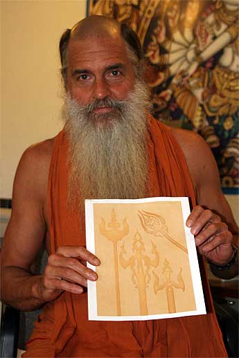 Paramacharya Palaniswami has been working on getting new monks' clothing made in India. He has been working on designs for new curtains for the Deity shrines in Kadavul, designs for wooden statues in from of Kadavul to replace the old "TIKI" torch lights on either side of the door and he has also been communicating with professional companies on the possibility of taking Hinduism Today to the internet as an on-line full color Digital Publication.