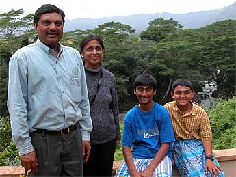 Today the Jagadeesh family visited us for the first time from California. B.V. Jagadeesh, his wife Anuradha and sons Karthik and Akshay were vacationing through the Hawaiian islands. Jagadeesh and his wife attended our 6am Siva homa and then later the whole family returned to see Iraivan Temple.