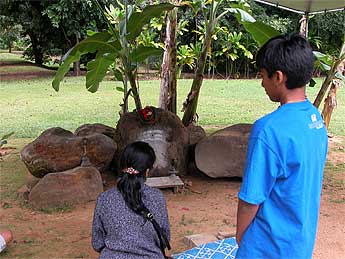 The family was very touched to hear about Gurudeva's powerful visions regarding Iraivan Temple, as they visited the original svayambhu lingam where Gurudeva's vision of Siva took place.