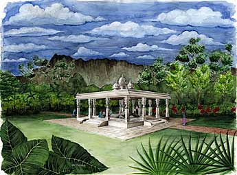 Below is the Svayambhulingam Mandapam that is being built around the site of Gurudeva's vision, sponsored by a devotee in Hong Kong. Preliminary engineering has started, soil tests have been made and in the months ahead the work will begin.