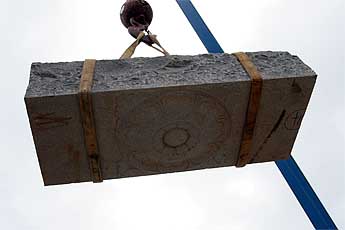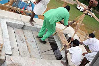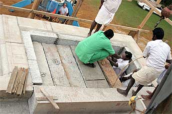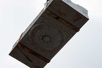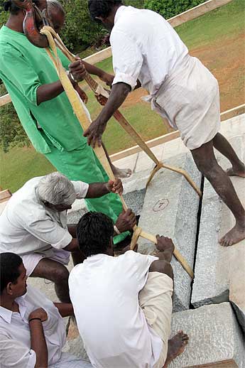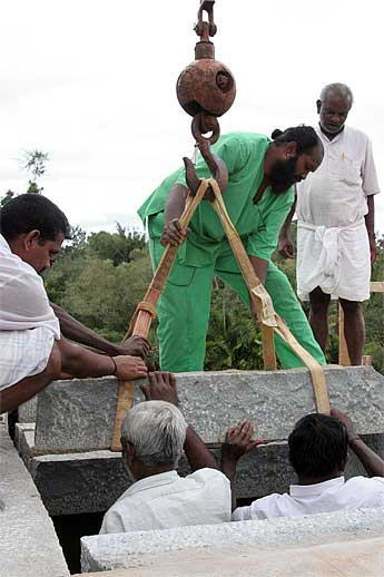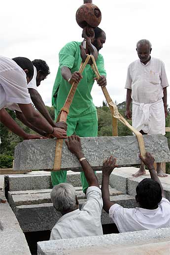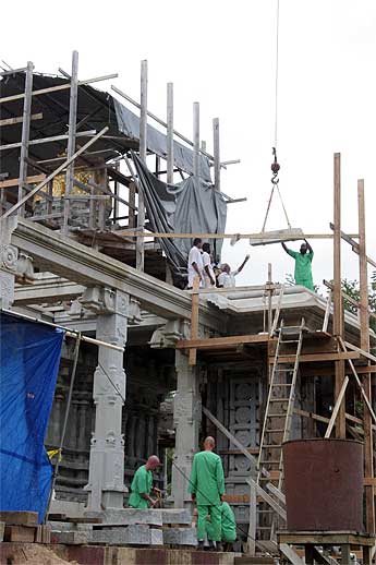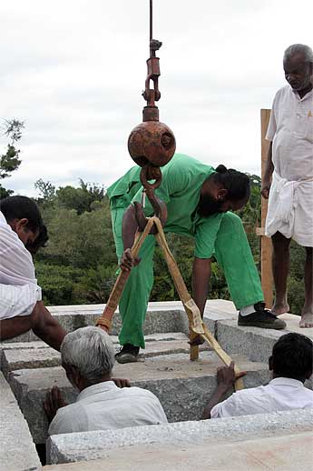 The big excitement to day was the crane lift of the next course of the Chinna Gopuram.
