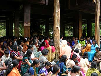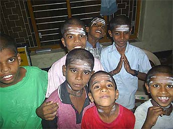Patrick Harrigan sent a report from the Gurukulam in Eastern Sri Lanka today. He visited today with the German president of a company called "The Little Smile Association," which has built a large children's village in the area. Patrick took this photo of a few of the boys in their rented home where they are living until we can rebuild their Gurukulam on land farther from the sea. Patrick, a devout Murugan bhaktar, is working to get them on e-mail, too, so the orphans and the monks on Kauai can be in closer touch as we approach the reconstructions phase. Thank you, Patrick, for taking those long motor bike rides along through the devastated countryside to keep in touch with our 43 orphans. It means the world to them that you are there in person to pass along everyone's love and eagerness to help.