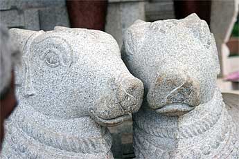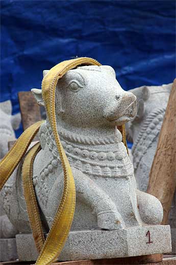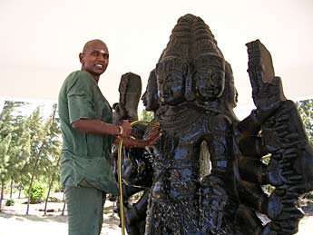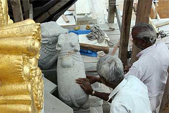 A new nice wooden ceiling now delicately covers this big granite murthi thus protecting it from any leaks during heavy rainfalls.