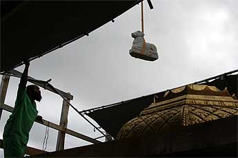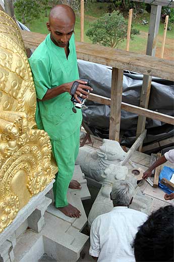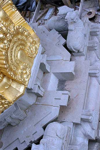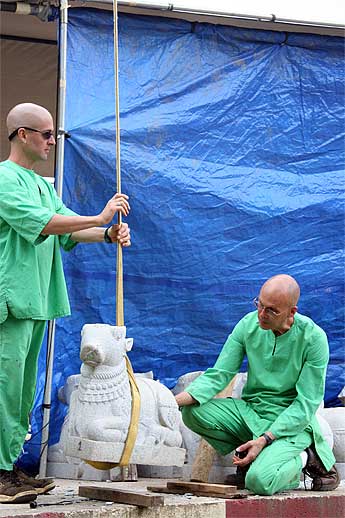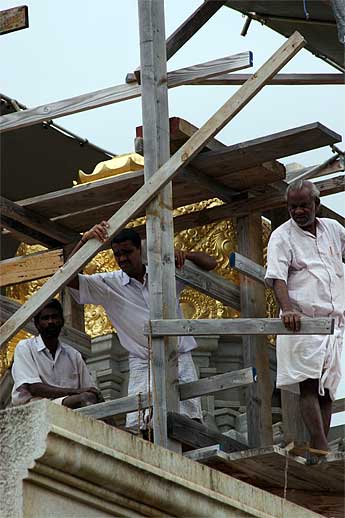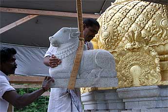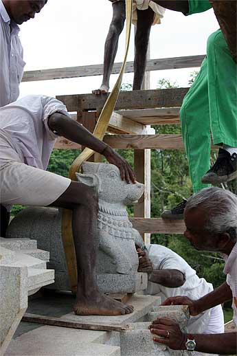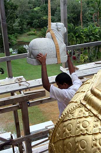 It was a very auspicious and joyful moment as all the stones needed to finish the vimanam were lifted into place yesterday.