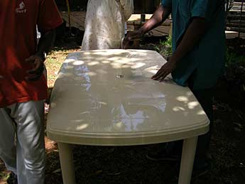 A few plastic tables have been purchased to be used during the Ganesha Homa.
