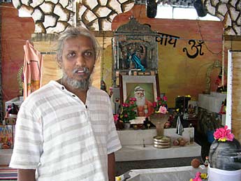 This is Shiv Cowlessur at his temple in Bon Accueil. This young man has dedicated a shrine for Gurudeva in the Temple.