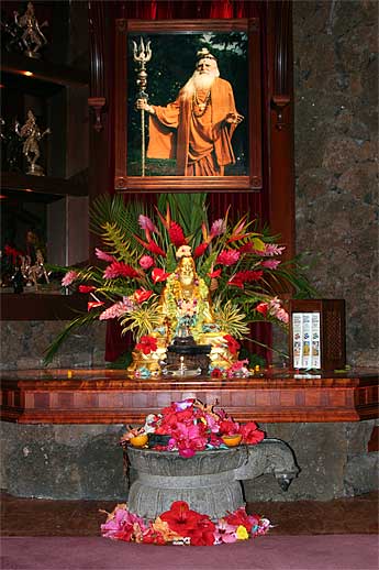 Umanath Tiwari and wife, from Montreal, Canada, made arrangements for their pilgrimage to Kauai about 2 months ago and after their late arrival on the island last night, they were here this morning for the 9am Siva puja. They enjoyed having darshan with Bodhinatha.