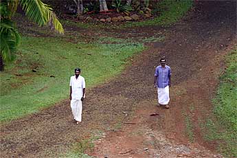 Our silpis, having gone to Kadavul for their morning darshan of the Gods, are coming now to the temple.