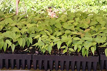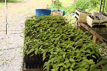 Sadhaka Adinatha continues to spearhead the tree planting efforts... Here he is raising up Mahogany tree seedlings.