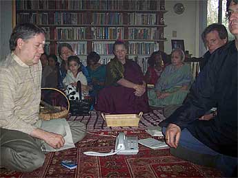 Golden Gate Mission members and friends listening as Satguru Bodhinatha Veylanswami talks to us from the