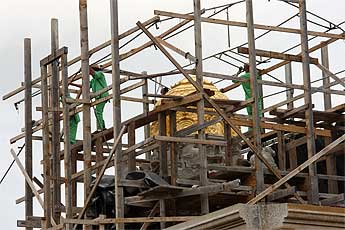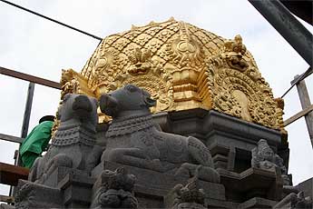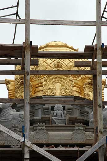 The team has removed some of the tarpaulins and the vimanam is open to the sky for the first time in a long time.